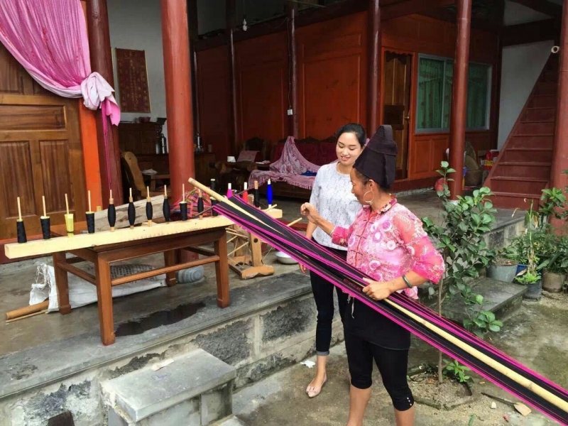 婦女們巧手織造出精美的筒裙、花帶子、筒帕等織錦工藝品。
