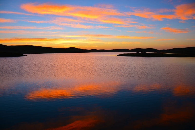 大山包湖泊,水域?qū)掗煟趟{(lán)天,湖光山色,遙相輝映,庫中島嶼,神似蓬萊,水鳥珍禽,出沒風(fēng)波里。
