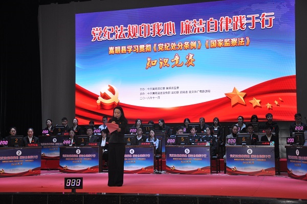 嵩明縣紀委監委會同縣委宣傳部、團縣委等單位部門聯合舉辦“黨紀法規印我心·廉潔自律踐于行”為主題的學習貫徹監察法知識競賽。(王瑞華 攝)