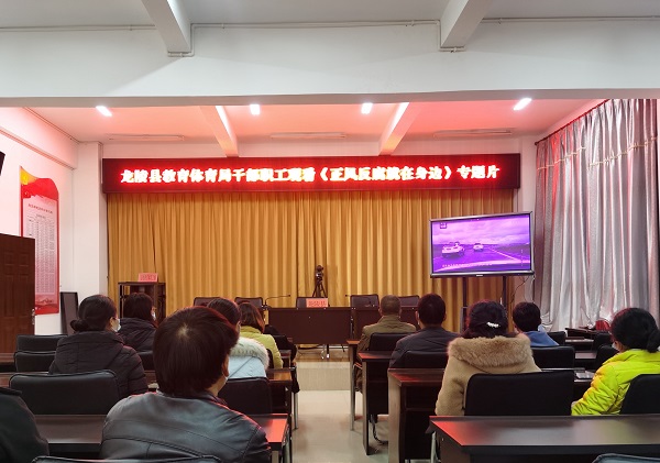 縣教育體育局黨員干部通過(guò)電視收看《正風(fēng)反腐就在身邊》。