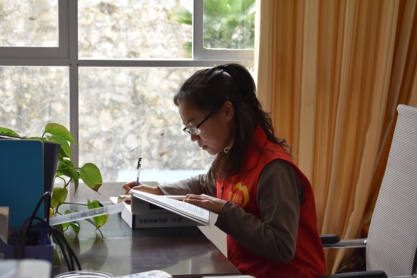 邊學邊記,一詞一句,開卷有益。德宏州梁河縣的一名阿昌族青年在圖書館一角靜心閱讀學習,品味著知識的力量。(何成江 攝)