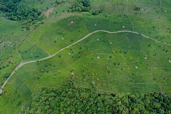 春耕時節,氣清景明,萬物皆顯,西盟縣翁嘎科鎮茶園連片的茶葉清透碧綠,透出勃勃生機。(羅嘉 攝)