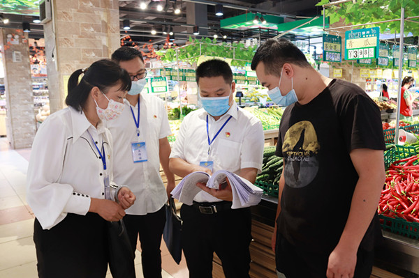 富寧縣紀(jì)委監(jiān)委緊盯作風(fēng)革命效能革命,派出監(jiān)督檢查組以全面檢查、重點(diǎn)抽查、同步聯(lián)動(dòng)等形式,先后來(lái)到超市、農(nóng)貿(mào)市場(chǎng)等地,抽查是否存在公職人員違規(guī)公款購(gòu)買月餅、私人訂制禮盒等行為。圖為該縣紀(jì)委監(jiān)委深入超市向工作人員了解有關(guān)情況。(李妹方 攝)