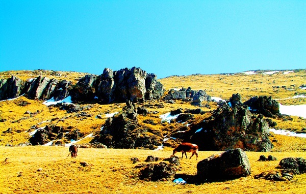 “小雪氣寒而將雪矣,地寒未甚而雪未大也。”小雪后氣溫急劇下降,降水形式由雨變成雪,一場場山頂雪在催促著樹林褪去秋日盛裝,迎接寒冬的到來。(斯娜卓瑪 攝)