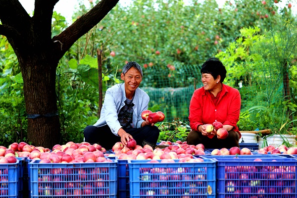 進入初冬,甘甜如蜜的蘋果掛滿枝頭,成熟的氣息彌漫果園,農人們收獲著豐收的喜悅,腰包更鼓了、笑容也更甜了。(方俊 攝)