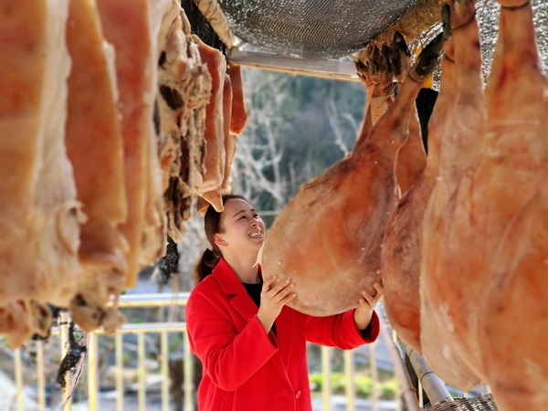 冬臘風腌,蓄以御冬。小雪剛剛到來,人們便開始準備過冬御寒的食物,將腌制好的火腿進行晾曬,靜待時光回饋香醇厚重的臘味。(王龍芹 攝)