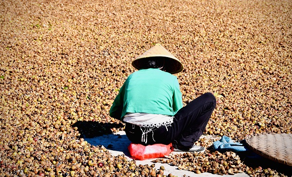 晴朗的冬日,氣溫降低,天氣變得干燥,正是晾曬農作物的好天氣。滿地的油茶籽在陽光的炙烤下一個個“裂開了嘴”,勤勞樸實的農婦正以最快的速度去掉油茶籽外殼。(李碩 攝)