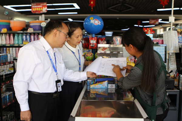馬關(guān)縣紀(jì)委監(jiān)委緊盯節(jié)日“四風(fēng)”問題易發(fā)多發(fā)的重要領(lǐng)域和關(guān)鍵環(huán)節(jié),深入各縣城區(qū)超市、飯店等,采取突擊抽查、大數(shù)據(jù)監(jiān)督等方式進(jìn)行明察暗訪,及時(shí)發(fā)現(xiàn)糾正不良風(fēng)氣。(駱晗 攝)