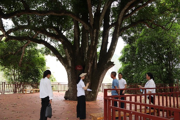 富寧縣將環境保護監督工作納入日常監督工作和巡察工作,深入村組一線收集問題線索,推進環境保護工作落到實處。圖為該縣紀委監委工作人員聯合縣委巡察組工作人員在歸朝鎮冒塘村了解古樹保護情況。(閆文杰 攝)