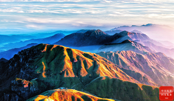武功山地處湖南、江西交界處的羅霄山系北段,深秋清晨,和煦的陽光為十萬畝高山草甸渲染上金黃,隨風飄逸的薄霧在奇峰怪石腰間系上白色的玉紗,綿延天際的云海帶給人美幻無盡的遐想。(江西省萍鄉市武功山景區紀檢監察工委供 鄧建萍 攝)