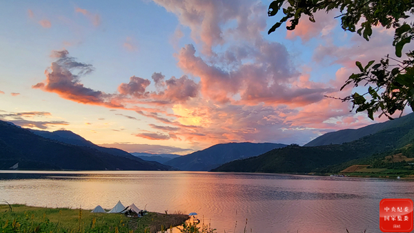 秋高氣爽,到云南省鳳慶縣魯史鎮觀光游覽的人絡繹不絕。圖為魯史鎮浴龍島的傍晚時分,游人在露營、釣魚,悠然自得享受美景。(云南省鳳慶縣紀委監委供 梅雪賢 攝)