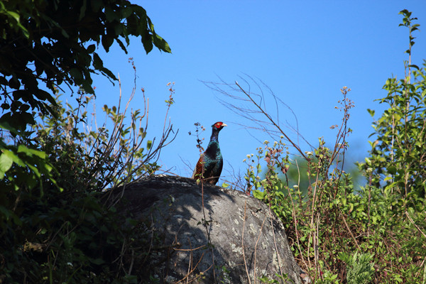 冬日的西雙版納的熱帶雨林仍然色彩斑斕。一只黑頸長尾雉悄悄鉆出草叢,享受著藍天綠草環抱的恬靜,它的“華麗迷彩服”在冬日暖陽的照耀下,更加的鮮艷亮麗、光彩奪目。(陳典攝)