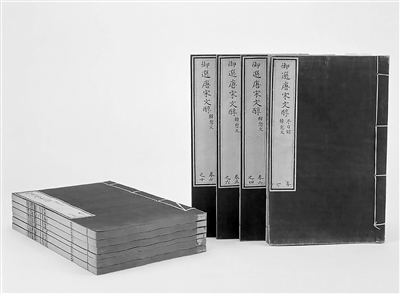 圖②、③:唐宋八大家文章的選本古代有很多種,這是清朝乾隆命人選編的《唐宋文醇》,內含康熙、乾隆的評論文字,全書色彩斑斕,印制精美。