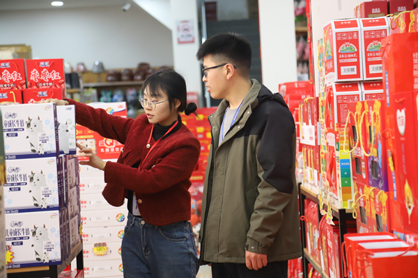 綠春縣紀委監委緊盯以提貨券、購物卡、電子紅包、快遞物流等“隔空送禮”問題開展明察暗訪,深挖細查隱形變異“四風”問題線索。圖為該縣紀檢監察干部在超市、商場了解節禮預訂情況。(楊云潔 攝)