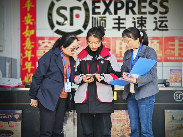 蒙自市紀委監委緊盯“隔空送禮”等隱形變異“四風”問題,以快遞寄件信息、快遞驛站收取件為切入點,篩查相關信息。圖為紀檢監察干部在快遞運營點詢問相關情況。(徐雪 攝)