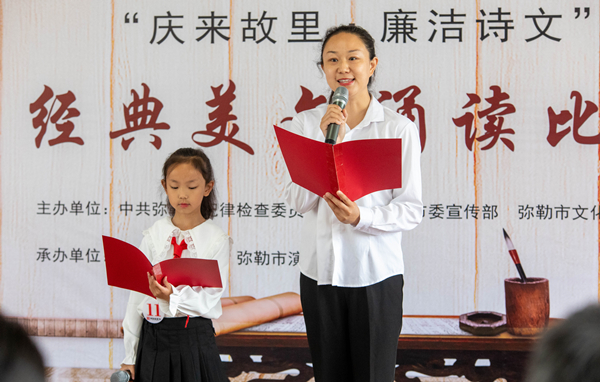 彌勒市紀(jì)委監(jiān)委聯(lián)合市委宣傳部、市婦聯(lián)等部門以清廉家庭建設(shè)為抓手,引導(dǎo)廣大家庭以“小家”好家風(fēng),促進(jìn)“大家”好風(fēng)氣。圖為該市組織親子家庭參加廉潔經(jīng)典詩文誦讀比賽。(彌紀(jì)宣 攝)