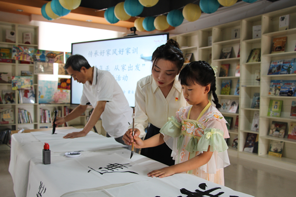 蒙自市紀(jì)委監(jiān)委將廉潔家風(fēng)與傳統(tǒng)文化相結(jié)合,組織紀(jì)檢監(jiān)察干部家庭開展“風(fēng)清氣正 從家出發(fā)”“廉內(nèi)助”活動(dòng),以良好家風(fēng)“廉”接優(yōu)良作風(fēng)。圖為紀(jì)檢干部手把手教孩子書“廉”。(徐雪 攝)