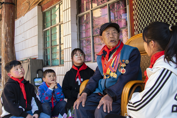 瀘西縣紀(jì)委監(jiān)委充分挖掘運(yùn)用本地紅色資源中蘊(yùn)涵的廉潔元素,正作風(fēng)、興黨風(fēng)、促民風(fēng)。圖為革命前輩為少先隊(duì)員講述紅色家風(fēng)故事。(肖燕斌 攝)