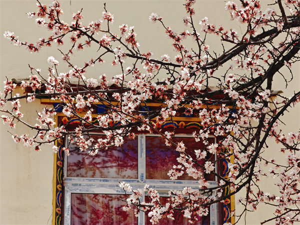 清明節(jié),群山環(huán)抱、雪山腳下的香格里拉市尼西鄉(xiāng)湯堆村桃花進入盛放期,呈現出一幅“去年今日此園中,人面桃花相映紅”的美麗畫面。(何維龍 攝)
