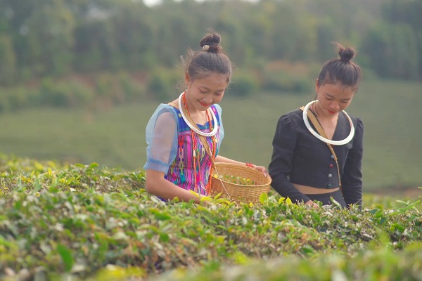 清明前后,是采摘春葉制作春茶的最佳時機。在德宏州芒市西山鄉(xiāng)的茶園里,景頗姑娘背著竹簍,十指翻飛采茶忙。(許有濤 攝)