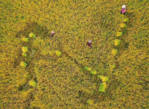 大暑豐盈,稻浪滾滾。勐海縣稻谷迎來收獲,空氣里彌漫著陣陣稻香,金色稻穗為老百姓帶來豐收的喜悅。(段健 攝)