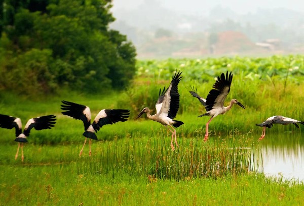 大暑時節的普者黑,煙水迷蒙、夏花綻放、草木豐茂,一群“精靈”振翅飛翔,搖曳出大自然最美舞姿。(康關福 攝)