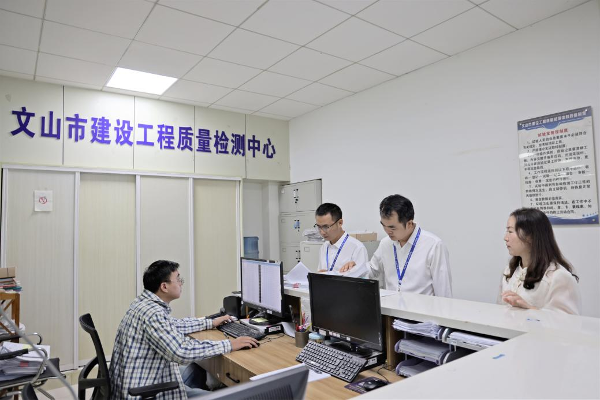 文山市紀委監委充分發揮派駐機構監督探頭作用,聚焦安全生產領域責任落實的關鍵環節,通過“組地”協同監督機制,加大監督檢查力度,督促相關部門加強隱患排查整治,樹牢安全生產底線。圖為該市紀檢監察干部在建設工程質量檢測中心開展監督檢查。(周鴻飛 攝)