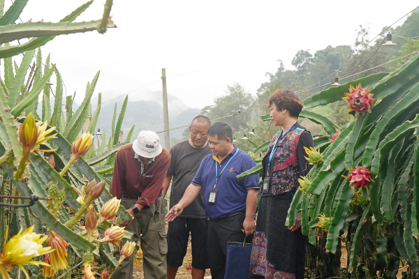 麻栗坡縣紀委監委不斷創新派駐監督方式方法,通過談心談話、一線走訪、抽查督查等方式,緊盯鄉村振興、糧食安全、耕地保護等領域,開展“駐點式”“下沉式”監督,讓群眾時刻感受到監督就在身邊。圖為該縣紀檢監察干部在麻栗鎮火龍果種植基地了解有關情況。(韋學蓮 攝)