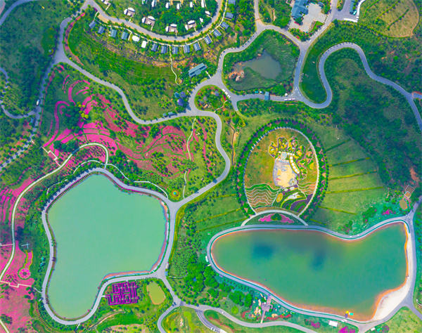 夏至時節,走進彌勒市太平湖森林公園,盛夏的花海艷麗多姿。大地藝術作品——“太平公主”頭戴花冠、身披霞衣,十分壯美,令人嘆為觀止。(李昱廷 攝)