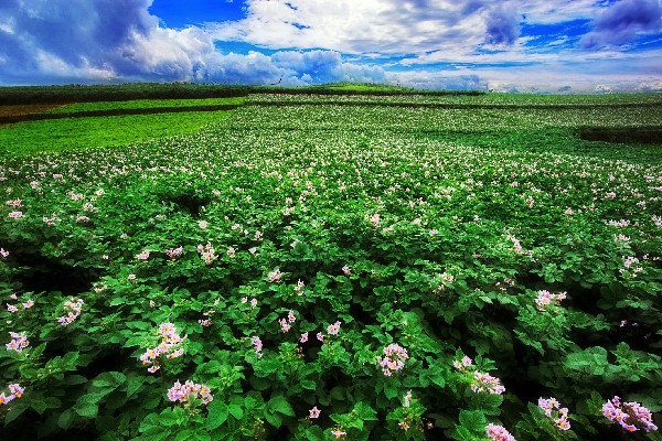 夏至已至,丘北舍得的山野間,微風帶著泥土的芳香拂過,洋芋花蘸滿了陽光,吟唱著夏的贊歌,期待著秋的收獲。(周陽 攝)