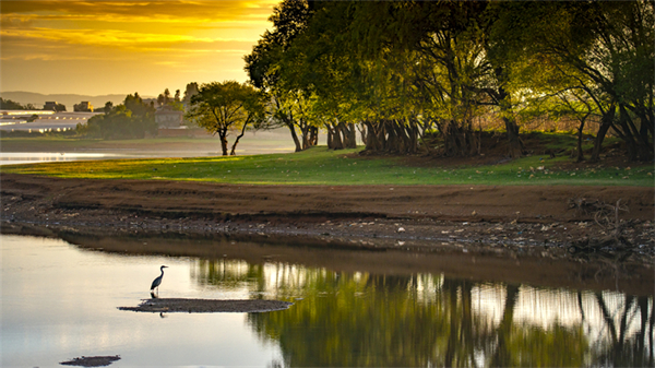 夏已至,萬物盛。在嵩明縣上游水庫,草木綠意蔥蘢,候鳥立于霞光中,共同繪就了一幅人與自然和諧共生的畫卷。(劉文貴 攝)