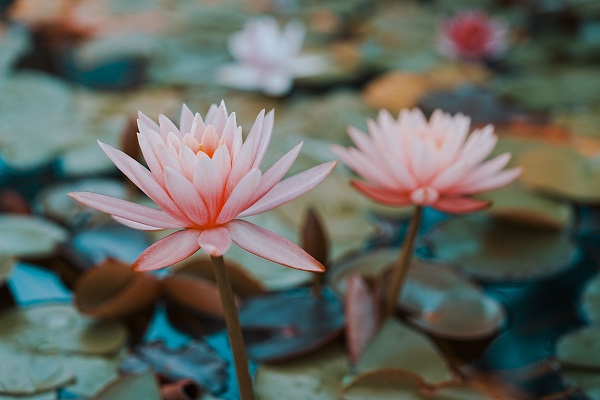 夏至如約而至,萬般美好可期。在陸良縣,清澈的池水中,一朵朵粉白色的睡蓮如少女般羞澀地依偎在碧綠的葉片上,分外清新脫俗。(劉易瑢 攝)