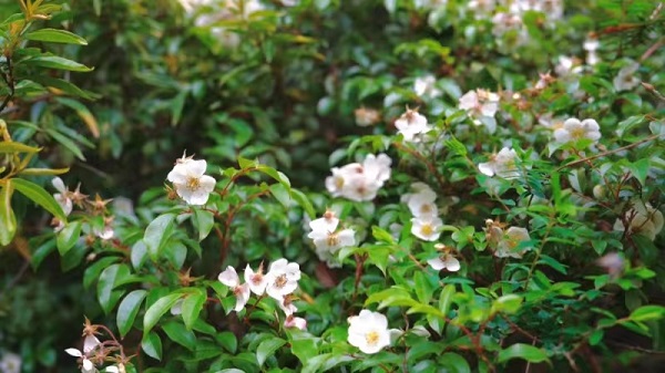 夏至時節,走進云縣涌寶鎮大亮山生態林場,白色的金櫻子花連片開放,讓人心曠神怡、流連忘返。(范晶 攝)