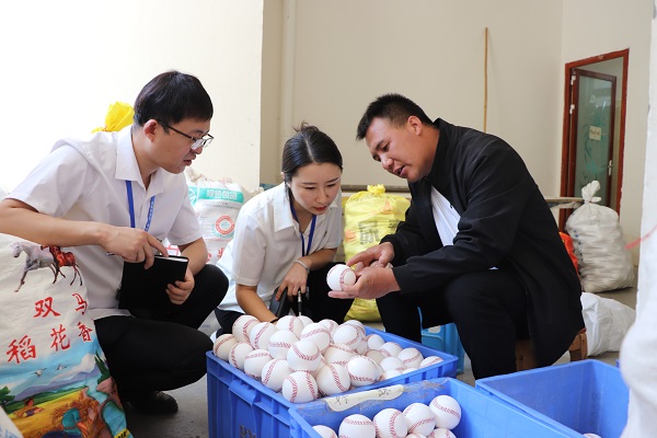圖為瀘水市稱桿鄉紀委工作人員到恩感思落易地搬遷安置點棒球生產車間走訪了解相關情況。(祝雪梅 攝)