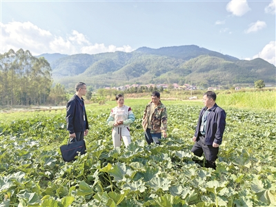 云南省景谷傣族彝族自治縣紀委監委運用“室組地”聯動機制,深入基層一線、田間地頭,著力發現吃拿卡要、不作為慢作為等侵害群眾利益問題,壓實職能部門責任,促進特色農業產業提質增效、農戶豐產增收。圖為近日,該縣紀委監委監督檢查組到威遠鎮公榔村種植基地了解相關情況。(石秉娟 攝)
