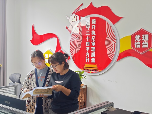 江城縣紀(jì)委監(jiān)委堅(jiān)持實(shí)事求是、精準(zhǔn)執(zhí)紀(jì),常態(tài)化對(duì)查結(jié)案件進(jìn)行全覆蓋評(píng)查。通過細(xì)查問題、深剖原因,強(qiáng)化以評(píng)促改、建章立制,確保客觀公正評(píng)價(jià)、精準(zhǔn)定性量紀(jì)執(zhí)法。圖為該縣紀(jì)委監(jiān)委審理室工作人員對(duì)相關(guān)案件的定性標(biāo)準(zhǔn)進(jìn)行討論。(沈雷 攝)