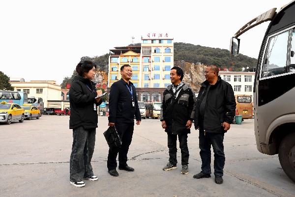 硯山縣紀(jì)委監(jiān)委加強(qiáng)對(duì)機(jī)場(chǎng)、車站及轄區(qū)內(nèi)高速公路收費(fèi)站、服務(wù)區(qū)等重要場(chǎng)所的監(jiān)督檢查,實(shí)地了解春運(yùn)客流、安全保障、客車班次調(diào)度等情況,推動(dòng)相關(guān)部門以最佳狀態(tài)、最優(yōu)服務(wù)履職盡責(zé)。圖為該縣紀(jì)檢監(jiān)察干部在縣城客運(yùn)站了解相關(guān)情況。(王建梅 攝)
