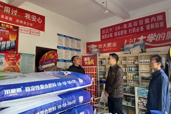 河口縣紀委監委聚焦春耕物資供給、農業技術服務、惠農政策落地落實等關鍵環節,統籌監督力量深入一線開展監督檢查,保障鄉村產業發展。圖為該縣紀檢監察干部深入農資經銷店,實地督查化肥、農藥等農資產品的質量、銷售情況。(朱纖纖 攝)