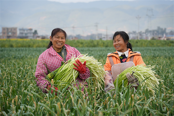 秋種春收,寒耕暖獲。雨水時節(jié),彌渡縣的7萬畝蒜薹進(jìn)入盛產(chǎn)期,蒜農(nóng)臉上滿溢豐收的喜悅。(李良秀 攝)