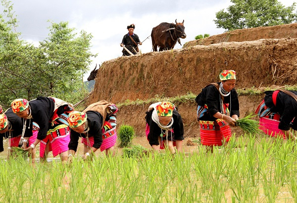 臨滄市滄源縣糯良鄉(xiāng)賀嶺村公播自然村是佤族農(nóng)耕文化的打卡地,當(dāng)?shù)氐呢糇迦罕娫谟晁?jié)氣期間進(jìn)行耕種。(李光華 攝)